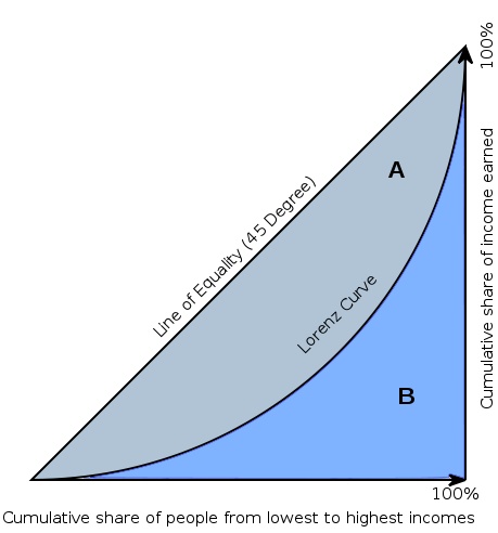 간단하게 설명드리자면 불균형의 정도를 나타내는 통계학적 지수로, 지표는 경제 분야에서 소득별 부의 불균형 정도를 나타내는데 사용합니다. 지니 계수는 회색 gini index의 면적을 삼각형 전체의 면적으로 나눈 값을 의미합니다. 부의 불균형이 높을 수록 gini index영역은 더 커지고, 그에 따라 지니 계수 또한 높아질 것입니다. 데이터에서의 지니계수는 1에 가까울수록 좋습니다.