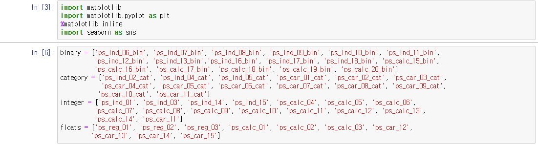 변수명을 통해서 뒤에 '_cat'으로 끝나면 범주형(categorical)변수이고 '_bin'이면 이진(binary)변수라는 점을 확인할 수 있었습니다.